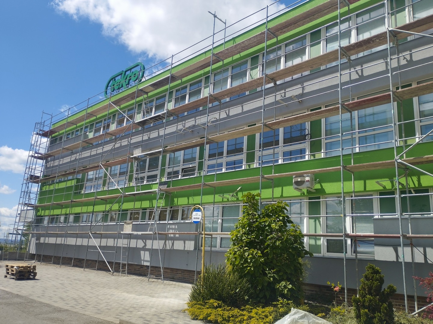 Zateplení administrativních budov má svá specifika – kromě technické kvality je často klíčová také přesná koordinace jednotlivých profesí a minimální omezení provozu firmy. V tomto reportu vám představíme realizaci zateplení administrativní budovy společnosti Tekro v Uničově – Nové Dědině, kde jsme kromě samotné fasády řešili i návaznost na žaluzie, vzduchotechniku, elektroinstalaci a další technologie.